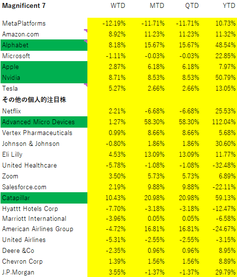 マグニフィセント7だけでなく、企業業績はこれまで発表された主要な銘柄に関しては概ね好調と言って良い状況かと思います。