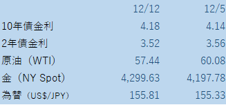 ドットチャートでは、2026年までにもう一回の利下げという前回9月からの大きな変更はありませんでした。