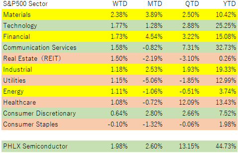 必ずしもグロース系が走っていなくても、幅広いセクターで上昇がみられることから、S&P500も最高値を更新したということがよくわかります。