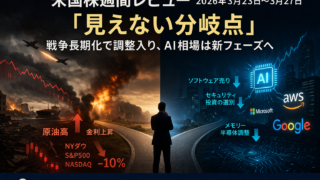 投資 【米国株式週間レビュー:3月23日ー27日】戦争の長期化を織り込む市場、そしてAI相場の見えない変化