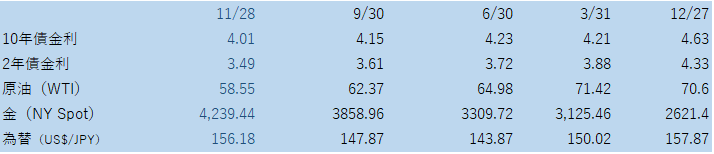 感謝祭が過ぎるとクリスマス・年末に向かって市場は動き出します。そして、12月のFOMCでの利下げ期待が高まっているので、クリスマス・ラリーに入っていくことが期待されるかなと思っています。