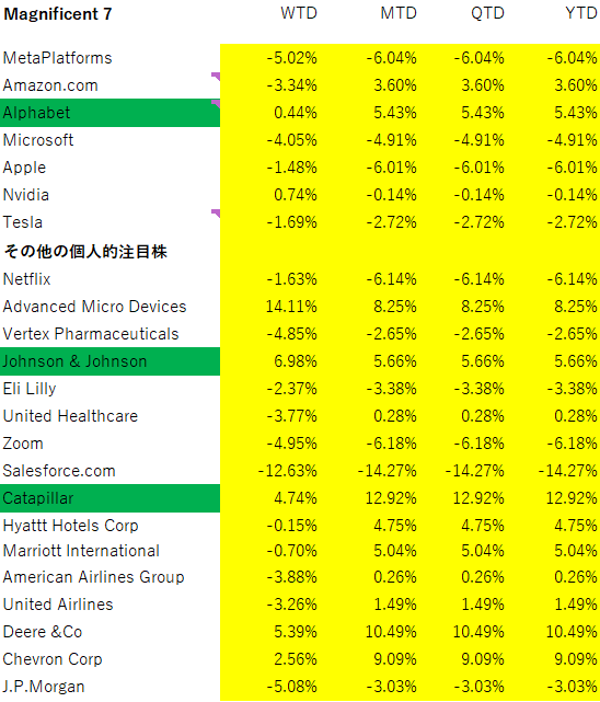 「メガテックを叩き売って乗り換えた」ほどではなく、マグニフィセント7は崩れていないと見ています。