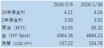 一方、今週(2/2〜2/6)は、週前半のリスクオフ局面でドルが安全資産として買われ、週末にはその動きが一部巻き戻されるなど、ドルは「弱い/強い」が同居しました。