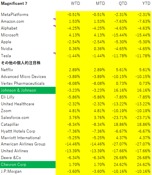週の前半に、ジョンソンエンドジョンソン(JNJ)がAll Time Highと引け値ベースの最高値を更新し、原油急騰の影響を受けてシェブロン(CVX)がやはりAll Time Highと引け値ベースの最高値を更新しました。